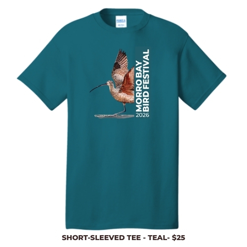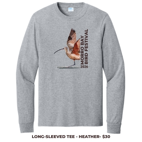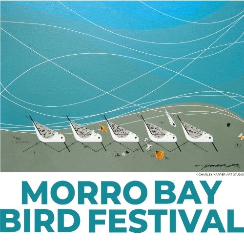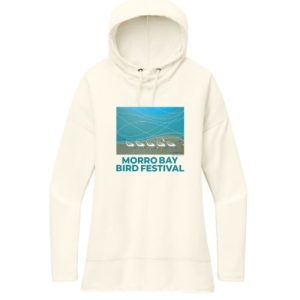 In the giclée “Strollin’ and Patrollin’” Harper focused his imagination on the synchronized scurrying of Sanderlings on a beach as they run with the ebb and flow of the surf. We are delighted to be able to offer this limited-edition Charley Harper hoodie at the Morro Bay Bird Festival and thank the family of Charley Harper for their permission to use this picture.